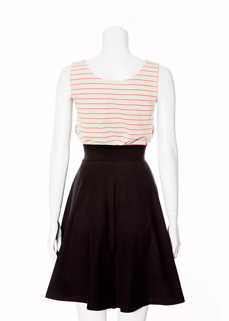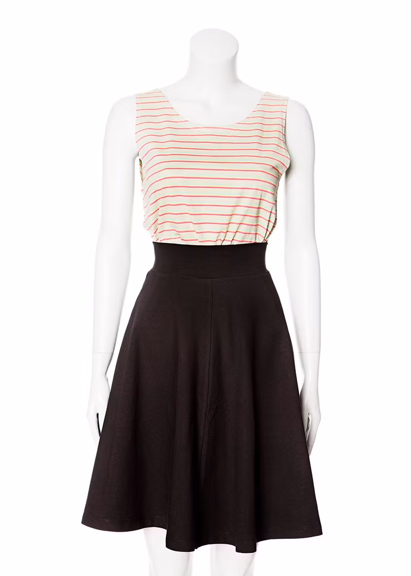 Storlek M. Halvcirkelkjol i mjukaste bomullstrikå. Tillåtande resår i midjan för ultimat komfort.