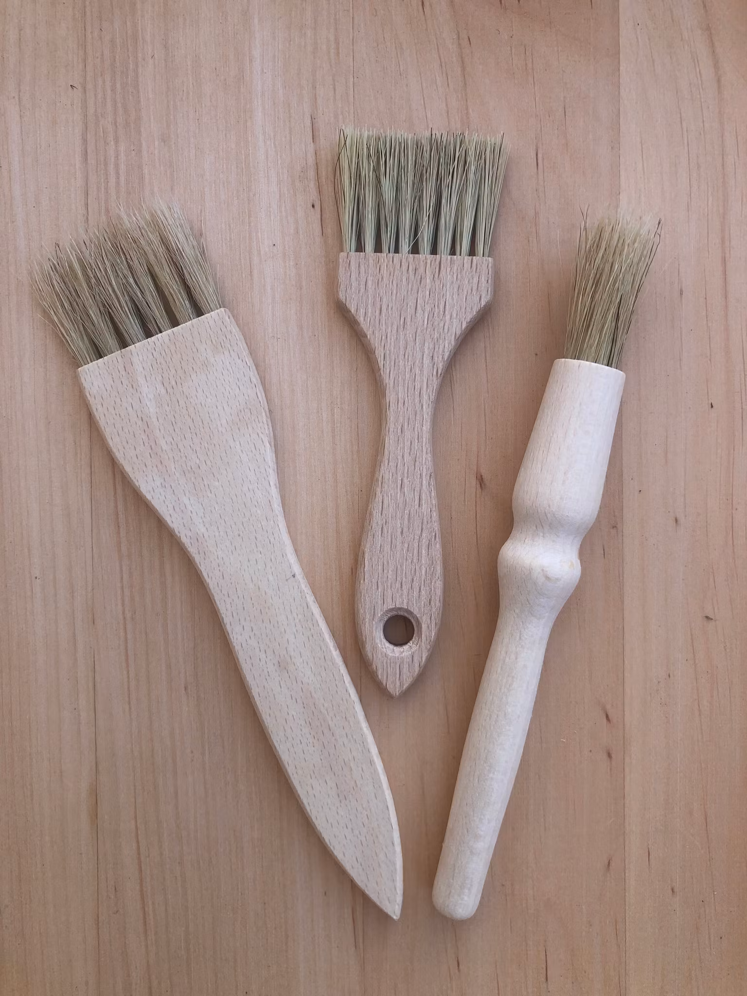 Bröd/Grillpensel Produkten är tyvärr slutsåld. :( Bak eller grillborsteFrån vänster till höger.Nr 1 trä/tagel 20x4 cm Nr 2 trä/blandborst 15x4x0,8 cmNr 3 trä/tagel rund 18 cm