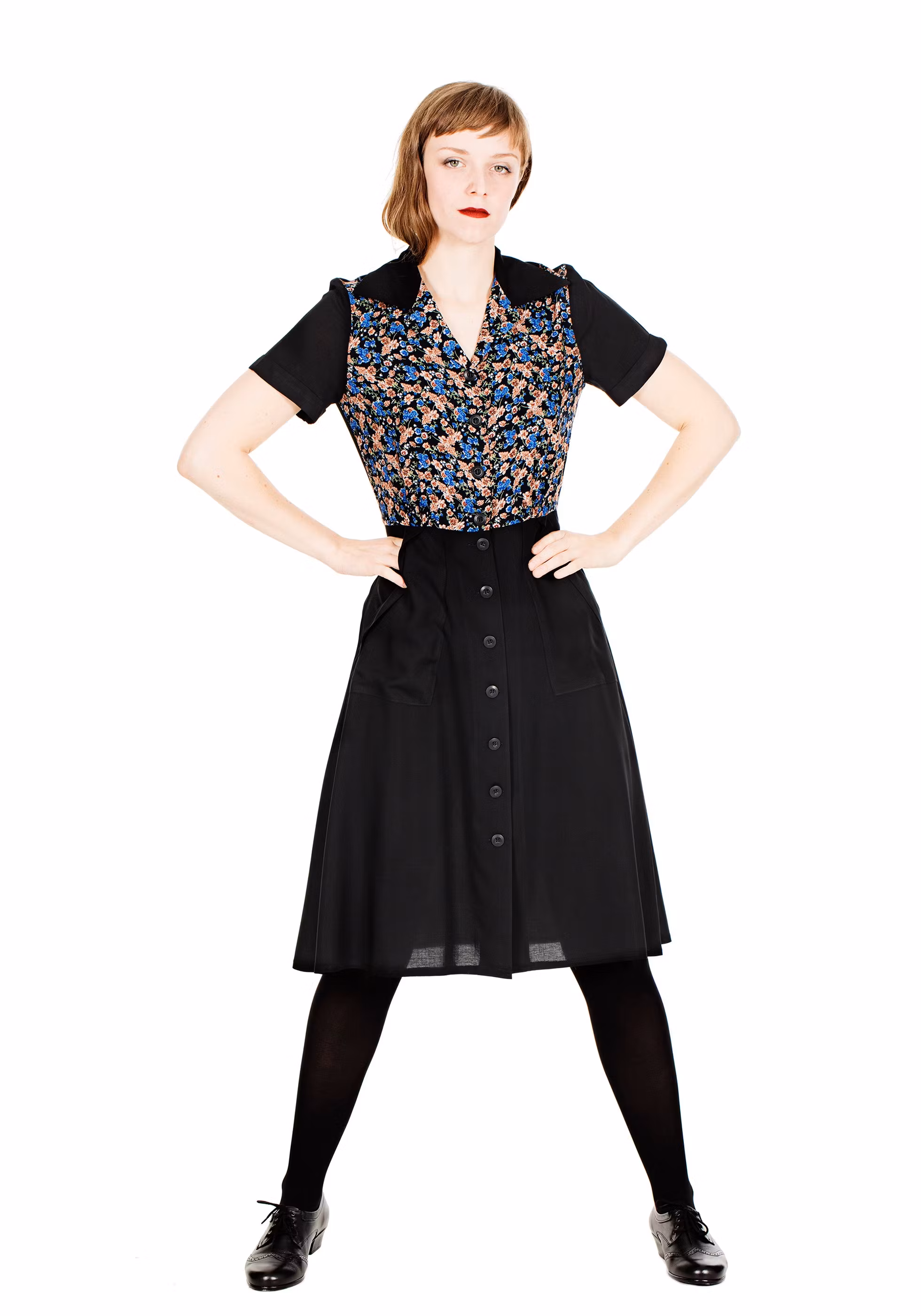 Skjortblusklänningen Dagny är älskad av våra kunder för sin sköna passform och sitt tidlösa snitt. Viskos ger klänningen ett elegant fall. Resår i ryggen låter midjemåttet anpassas efter din kropp. Fina detaljer som rynk vid midjan på livet samt uppvik vid ärmslut och fickor.
