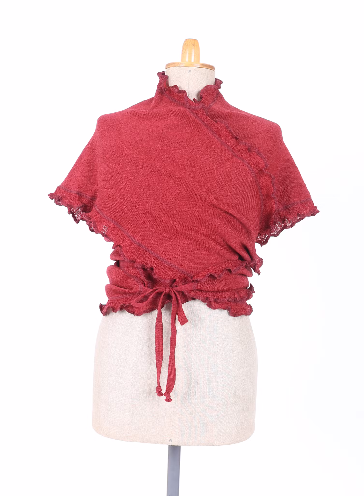 Tillverkad i en stretchig men samtidigt stadig kvalitet. Påsydd dekorativ volangkant i tunnare tyg. Knytband. 100 % ull.